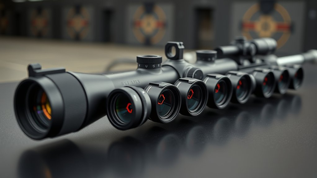 Selecting the right reticle options can considerably impact your shooting accuracy and speed. You’ll want to evaluate reticle types like dots, circles, or multi-system designs, which offer different aiming points for various scenarios. Smaller reticles, such as 2 MOA, provide finer precision, ideal for accuracy-focused shots, while larger ones, like 6 MOA, help with faster target acquisition.