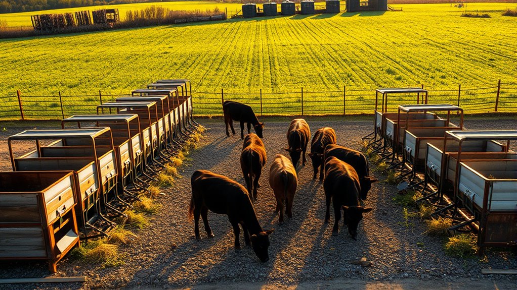 These options suit pastures, barns, and stalls, boosting efficiency and reducing mess. Keep exploring to see which feeder matches your herd and space, plus setup tips.