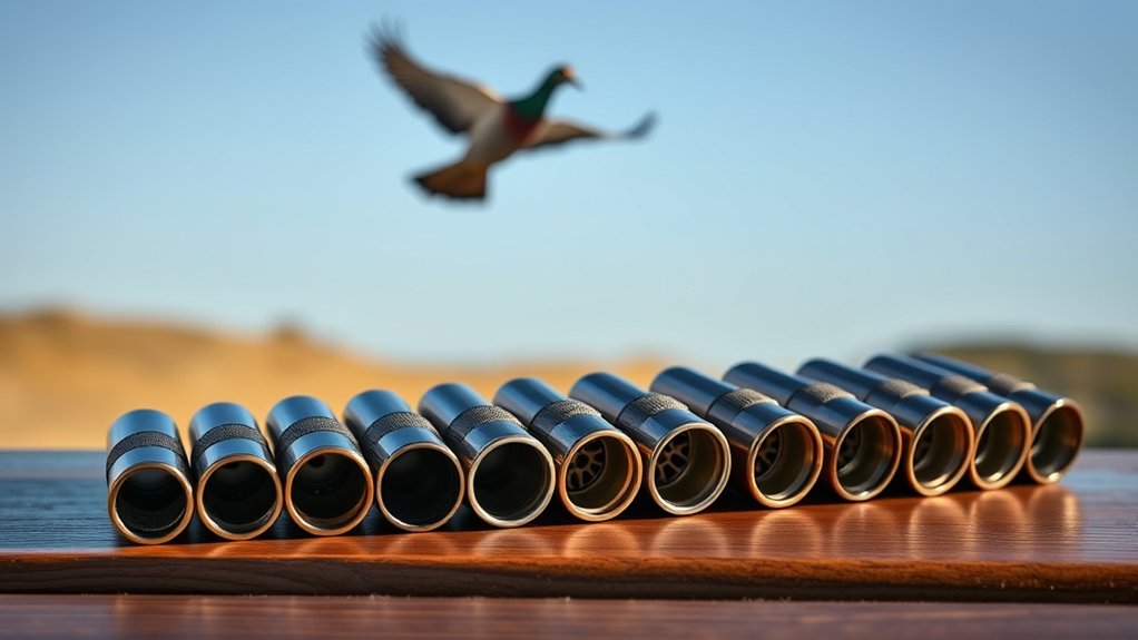 Hidden wrench slots also speed up installation, letting you swap chokes efficiently without carrying extra equipment. Finally, choose chokes compatible with multiple shotgun models to guarantee versatility.