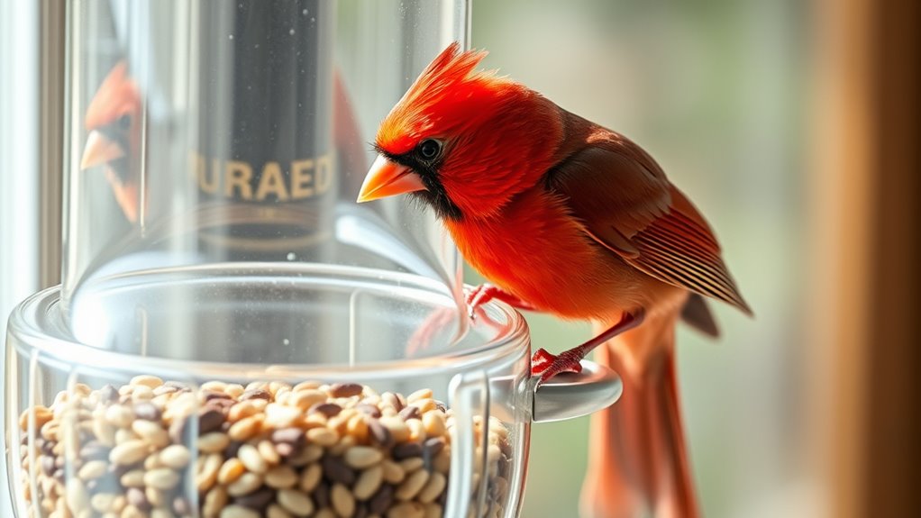 Matching the tray size to your birdwatching goals ensures consistent feeding and attracts a variety of species, helping you create a lively window display that keeps birds coming back.