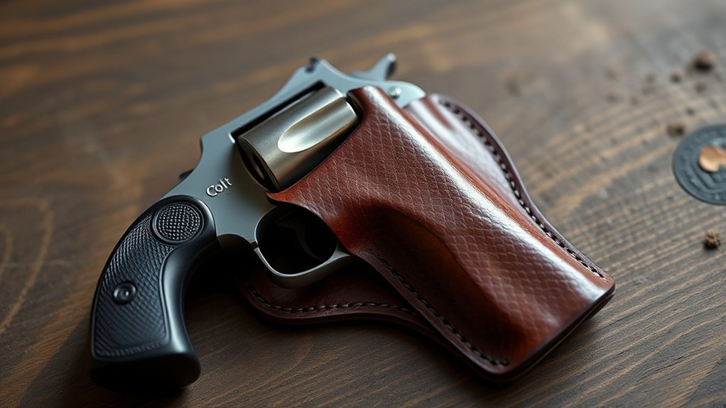 Although many factors influence your choice of a Colt Python holster, material quality and durability stand out as essential. Choosing holsters crafted from genuine leather, like steerhide or calf leather, guarantees long-lasting use. These premium materials not only resist wear but also mold to your firearm over time, enhancing security.