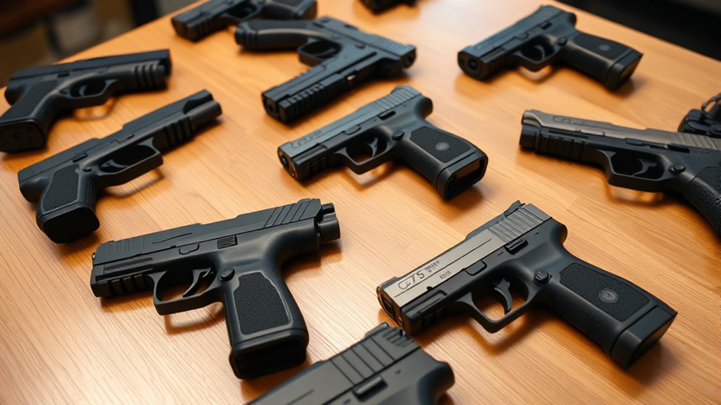 You’ll want to start with pistols like the Glock 43X, Smith & Wesson Shield Plus, or SIG Sauer P365. These are reliable, easy to handle, and have manageable recoil, making them great for beginners. They’re compact enough to conceal comfortably without sacrificing accuracy or capacity.