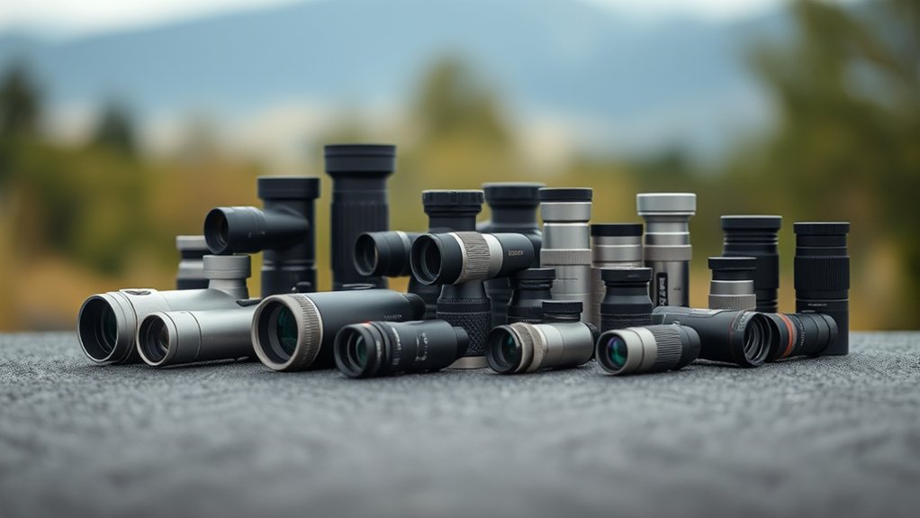 Features like included carrying cases and adjustable straps make transport simpler and more secure. Keep in mind, smaller scopes often have narrower fields of view, so balance size with your magnification needs. Selecting a compact scope that’s easy to carry ensures you can quickly access it when needed, without adding unnecessary weight or bulk.