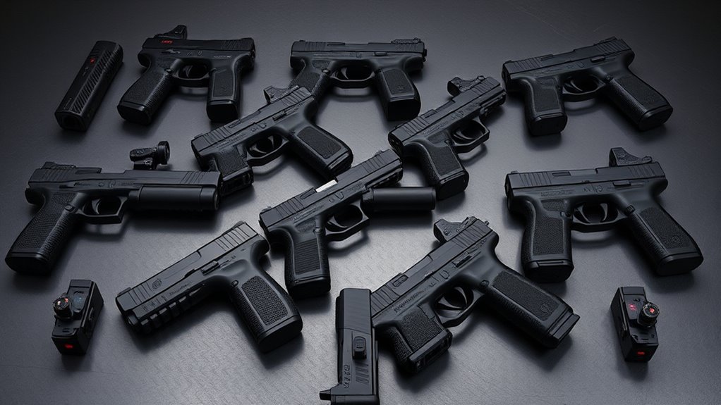 Mounting footprint compatibility is essential for a secure, accurate fit on your pistol. You’ll want the red dot’s footprint to match your slide’s design, ensuring proper installation and a solid, repeatable hold under recoil. Different firearms use footprints like RMR, MOS, or K-series, so you must verify compatibility before buying.