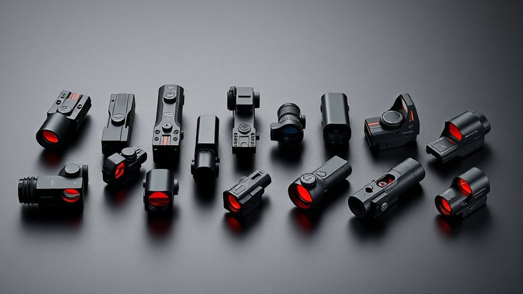 Whether you prefer multi-color reticles or quick-release mounts, these top picks cover your needs. Keep exploring to uncover key features that set them apart.