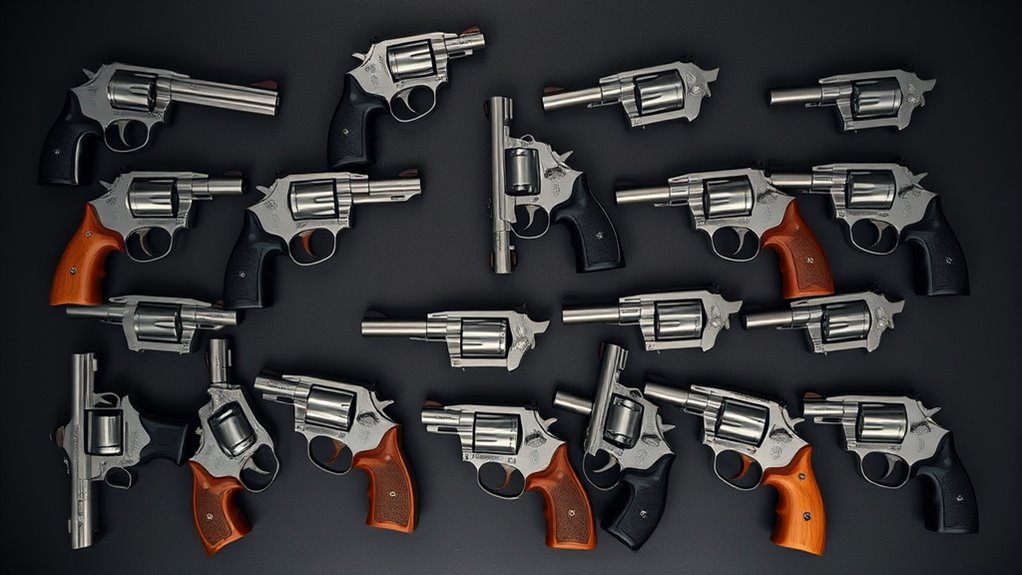 The design should follow your body’s contours, minimizing printing and ensuring discreet concealment under different clothing styles. Proper fit means selecting a holster compatible with your revolver model and barrel length, such as 2‑inch or 3.5‑inch barrels, for ideal retention. Adjustable features, like retention straps or customizable belt clips, provide a personalized fit that accommodates varying body sizes and carry preferences.