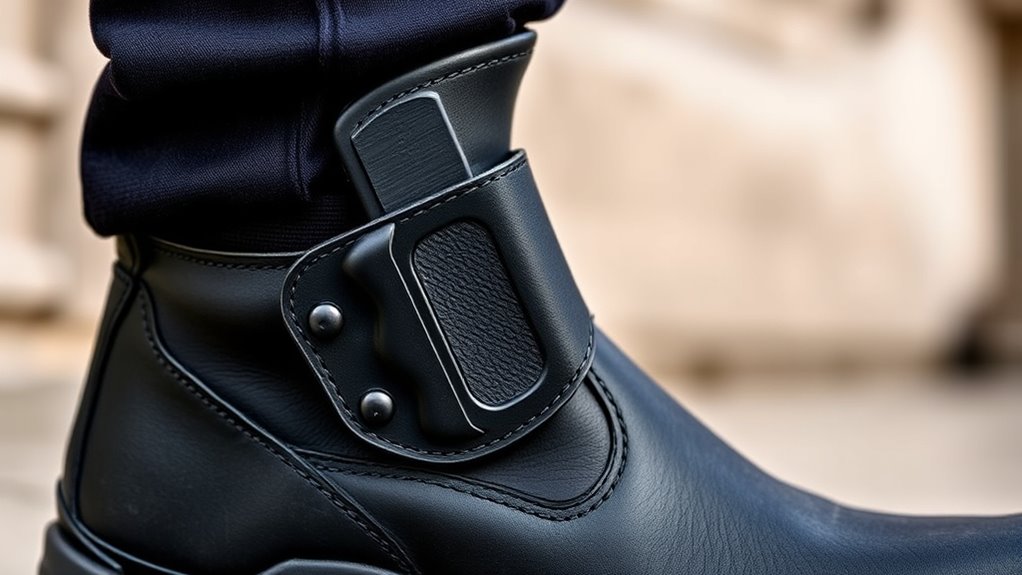 Lightweight materials make it easier to conceal the holster under clothing without adding bulk. Moisture-wicking properties are a bonus, helping manage sweat and humidity for all-day freshness. While adjustability matters, focus here on material quality and comfort to guarantee your ankle holster stays comfortable through extended use and active movement.