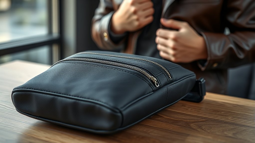 The design must avoid obvious firearm compartments, keeping your carry discreet. Finally, secure retention systems such as hook-and-loop fasteners or Kydex holsters keep your gun firmly in place but still accessible when you need it. This balance ensures you’re both ready and concealed.