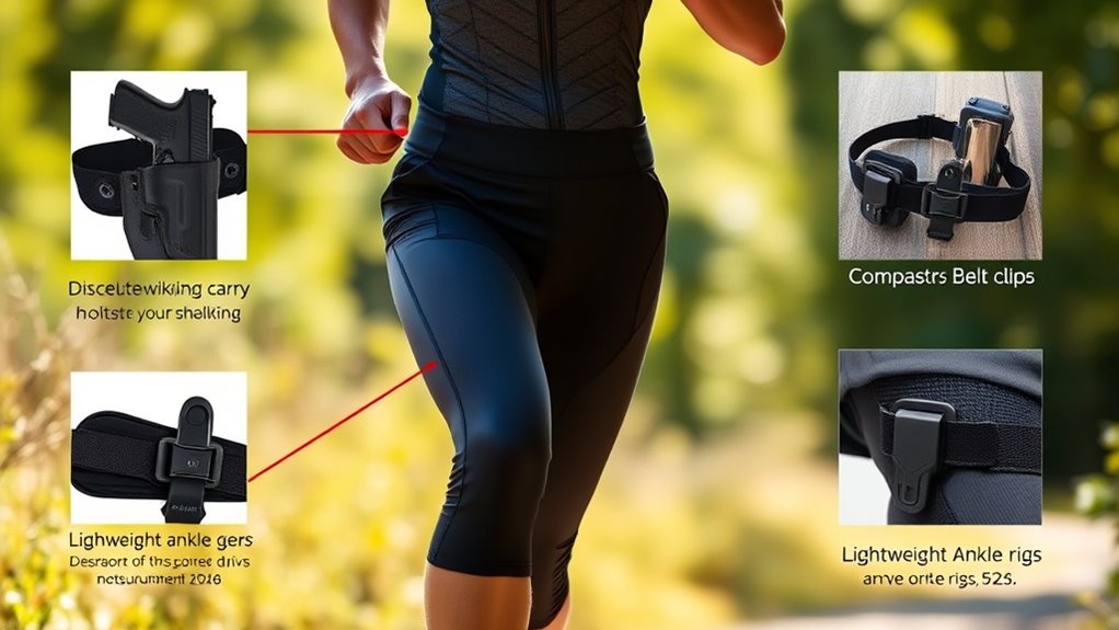 If you’re an active runner, the best concealed carry options combine comfort, secure retention, and quick access. Look for adjustable, breathable designs like neoprene belly bands or chest bags that fit your body snugly without restricting movement.