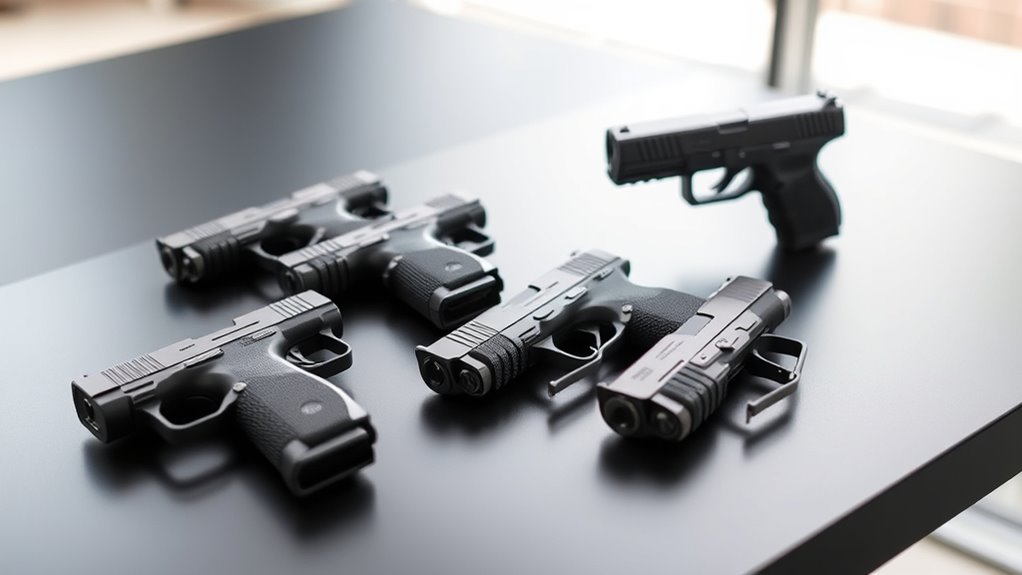 Choosing a concealed carry gun with ambidextrous design features guarantees that controls are easy to operate, regardless of your dominant hand. These guns have symmetrical controls and safeties accessible from both sides, making handling more intuitive. Reversible magazine releases and slide stops accommodate left-handed users without extra tools or modifications.