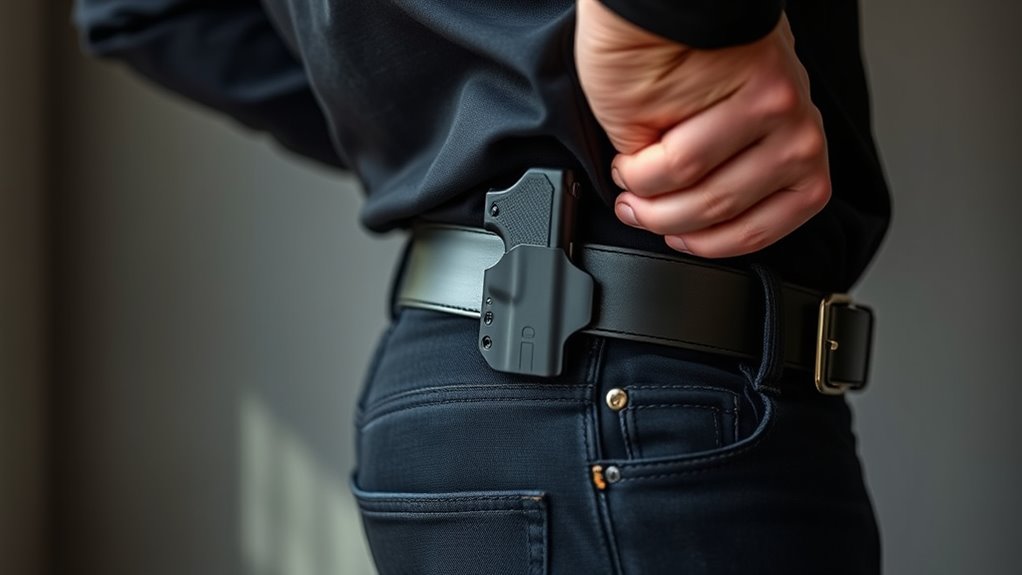 Lightweight, low-profile materials like neoprene or thin Kydex reduce bulk and pressure points, enhancing comfort on a slim build. A properly contoured holster conforms to your body, distributing weight evenly to prevent discomfort.