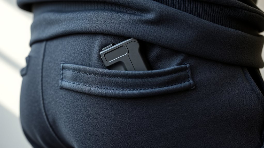 Holsters with adjustable carry angles help reduce printing, keeping your firearm discreet under loose sweatpants. Plus, multi-position holsters let you switch carry styles easily depending on your clothing layers or daily routine, improving concealment. Look for holsters with secure, adjustable fits to maintain comfort and stability in any position.
