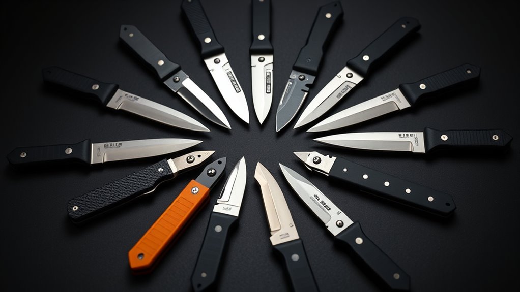 You’ll find various locking systems like liner locks, frame locks, and lock-back mechanisms, each offering different balances of security and ease of one-handed operation. The lock’s strength and reliability directly affect your knife’s effectiveness under stress.