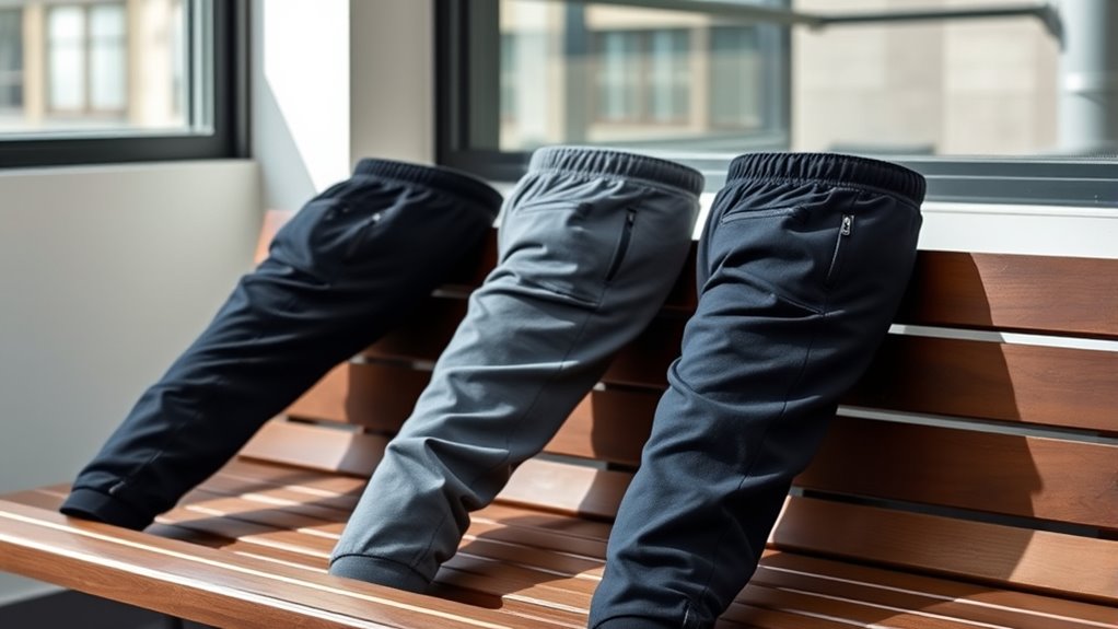 When you invest in concealed carry sweatpants, durability and material quality should top your list. Look for sweatpants crafted from heavy-duty nylon or reinforced polyester blends—they offer the strength needed to withstand daily wear. Materials like moisture-wicking spandex or breathable neoprene add comfort without sacrificing longevity, keeping you comfortable during frequent use.