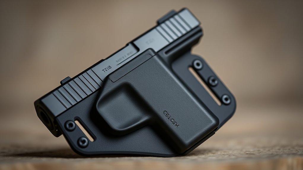 A slim profile is essential; bulky holsters tend to protrude and reveal your weapon. Kydex offers a secure, snug fit that prevents shifting, keeping the gun’s position consistent and less visible. Pair your holster with heavier or looser clothing to further mask any outline, ensuring your Glock stays well concealed throughout the day without drawing unwanted attention.