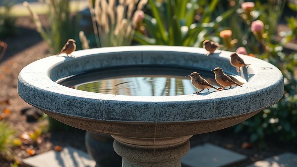 Opt for high-quality, outdoor-grade concrete to minimize maintenance and extend longevity. Remember, durability isn’t just about strength—it’s about resilience against weather, abrasion, and repeated water exposure, ensuring your bird bath stays functional and visually appealing season after season.