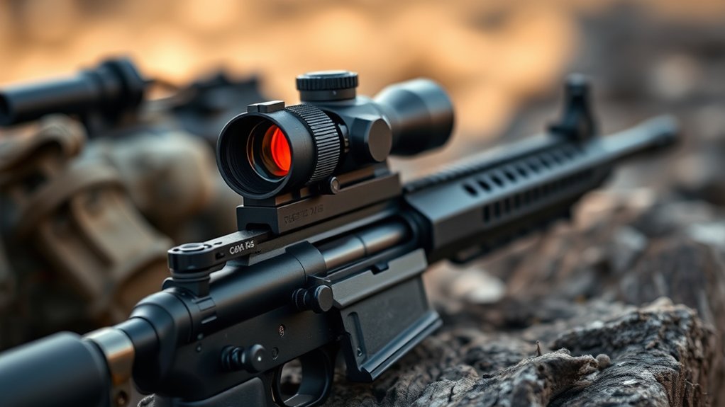 Finally, reticle brightness and contrast affect clarity, so choose one that maintains visibility in both low-light and bright conditions without distracting you.