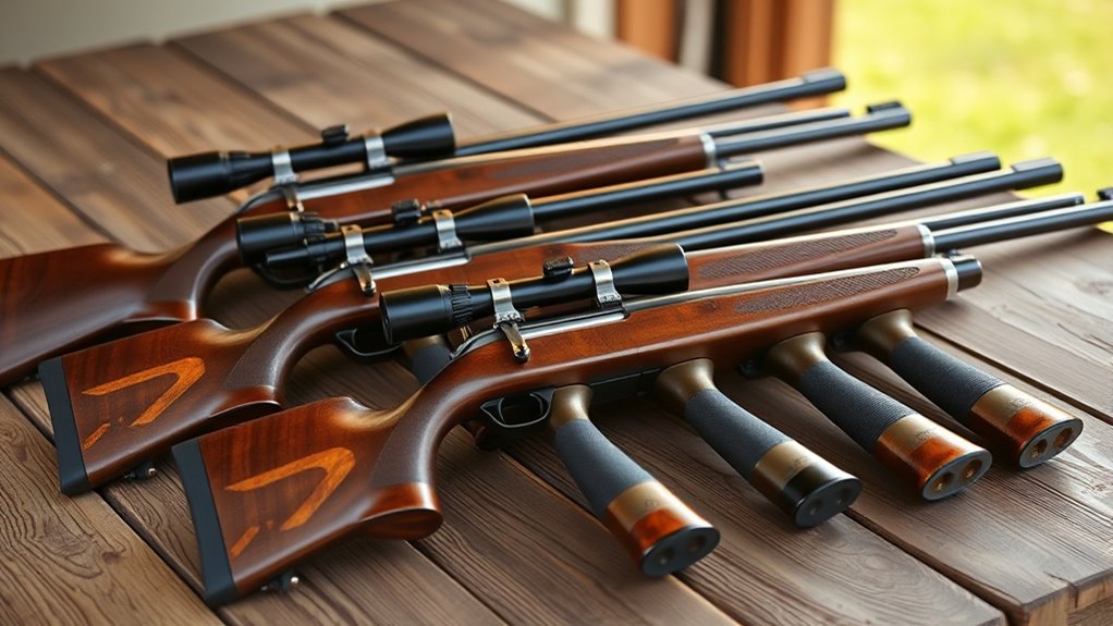 Check for reinforced joints and sturdy safety mechanisms—these features reflect solid craftsmanship and resilience to repeated use. Prioritizing these factors helps you select a Crosman air rifle built to last and perform well in varied conditions, giving you confidence with every shot.