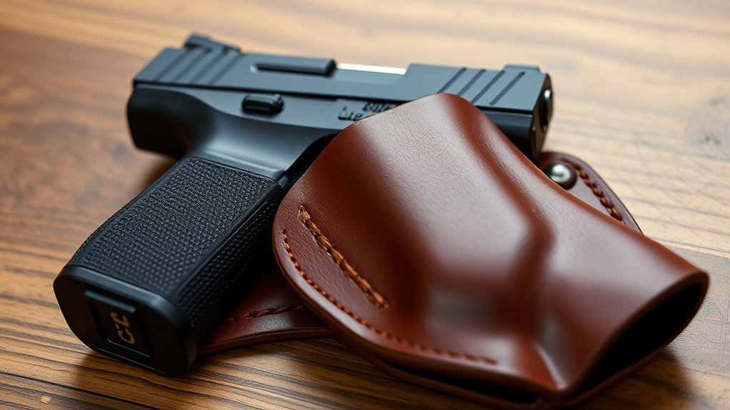 When selecting a holster, prioritize quality materials to guarantee reliability and protection in everyday carry.