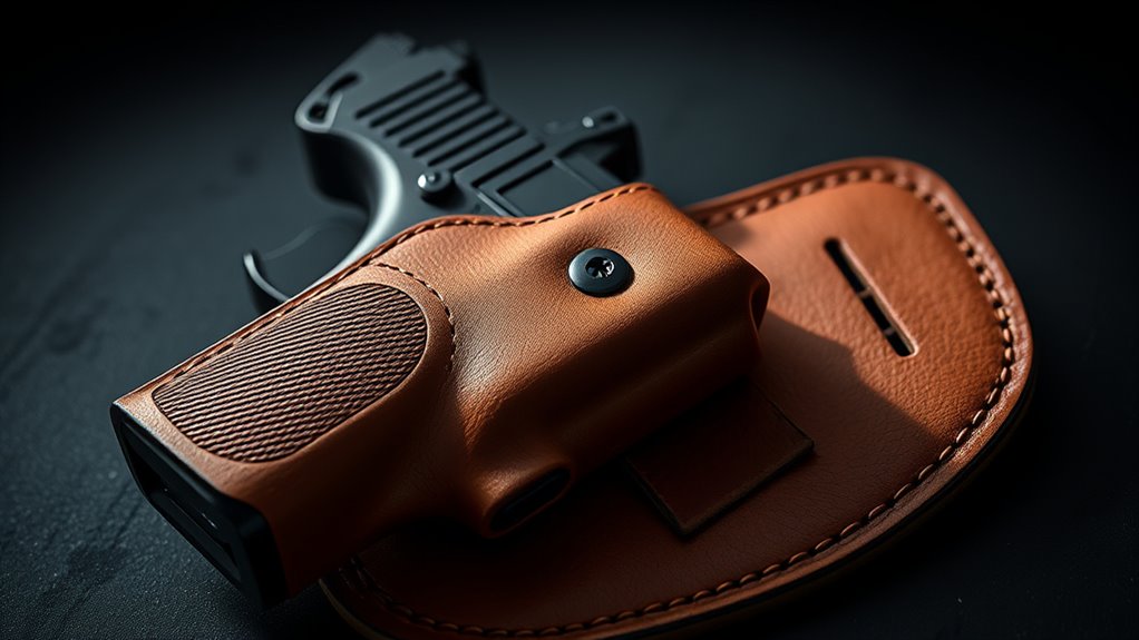 On the other hand, leather holsters provide superior comfort and a classic look, though they require more upkeep to avoid wear. Leather tends to be heavier but excels in concealment and traditional craftsmanship. When selecting your holster, consider how each material affects weight, retention, and draw speed.
