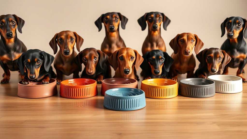 When choosing a dachshund slow feeder, you’ll want to weigh bowl capacity and the right size for your pup to prevent gulping and frustration. Consider non-slip stability, maze design variations, and material safety standards to guarantee durability and easy cleaning.