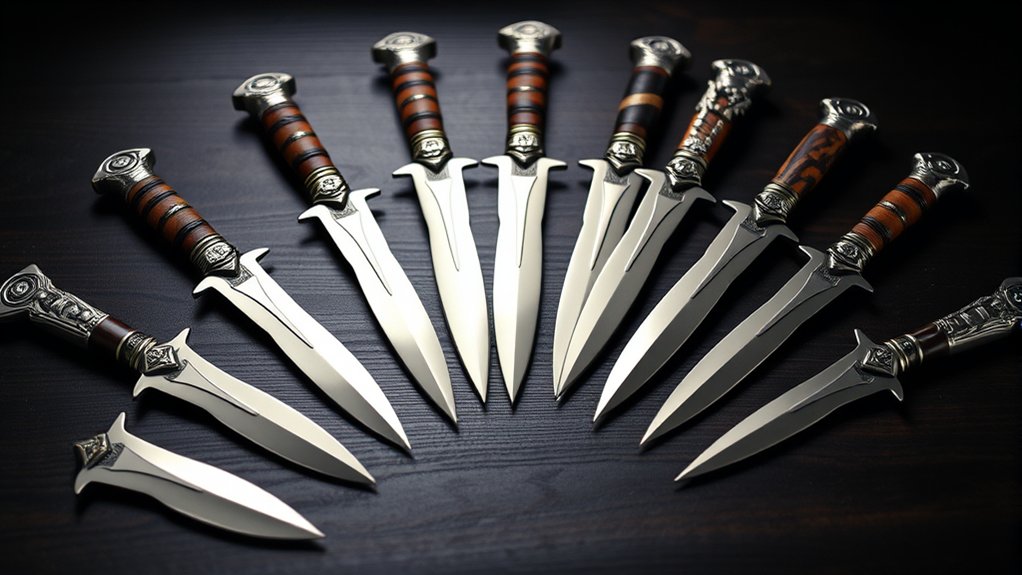 Over centuries, they evolved from practical weapons to symbols of status and craftsmanship. When you hold a dagger, you’re connecting with a design that balances functionality and artistry, shaped by warriors and artisans alike throughout history.