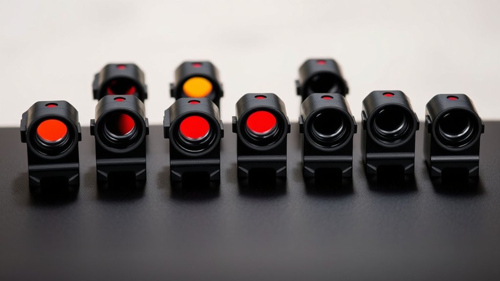 If you plan to use the sight across multiple firearms or accessories, look for broad compatibility with different mount types. Also, make sure the mounting system suits your intended use, whether concealed carry, competition, or tactical, to guarantee a solid attachment that won’t fail when it counts.