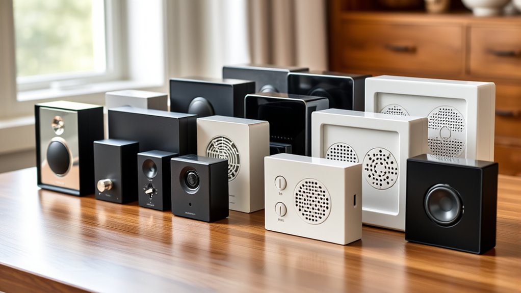 Although many doorbell chime boxes may look similar, their sound quality options can vary considerably, affecting your overall experience. You’ll find chimes with classic tones like “Ding-Dong” or “Ding,” as well as customizable sounds to match your style. The quality ranges from simple mechanical bells with clear, sharp notes to electronic sounds that mimic traditional chimes.