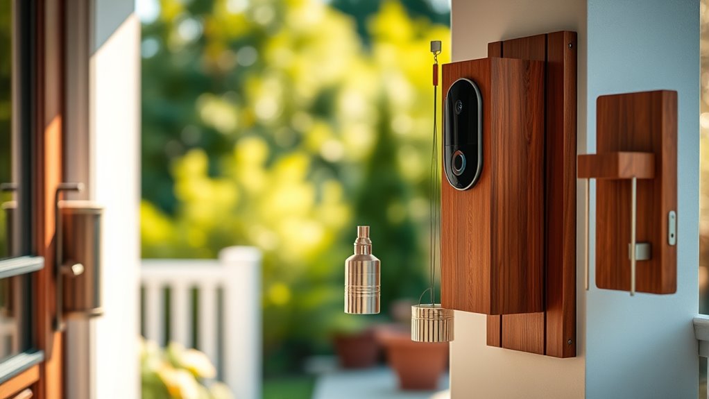 Weather-resistant and compact designs fit any home, ensuring reliable notifications indoors and outdoors. Keep exploring to discover which chimes best match your smart home needs and preferences.