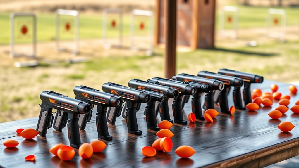 Keep in mind, though, that larger capacities can add weight and size, impacting portability. Balancing target capacity with the thrower’s size guarantees you get convenience without sacrificing performance.