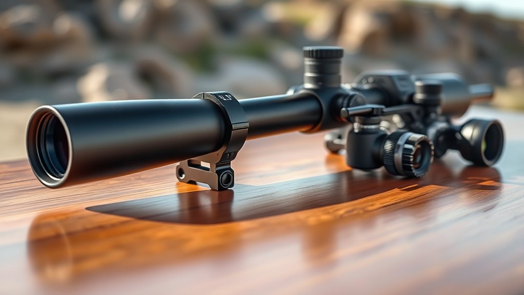 When you’re dialing in shots at extreme distances, precise adjustment mechanisms like locking turrets and zero stops keep your settings consistent and reliable. You want turrets with micro-adjustments and high click accuracy, so each movement fine-tunes your aim without overcorrection.
