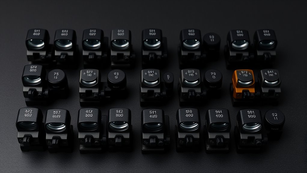 Some sights include multi-reticle systems, so you can toggle reticles for rapid target acquisition or precision aiming as conditions demand. This versatility enhances usability across diverse lighting and target types, making the optic more adaptable. Customizable reticle options let you optimize your aiming system based on personal preference or specific operational needs, improving comfort, confidence, and performance.