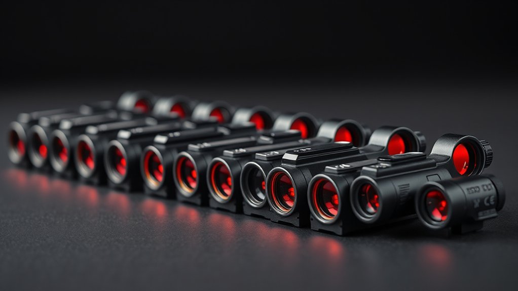 Also, consider sights with side-mounted battery compartments. They allow quick replacements without losing zero, minimizing downtime. Keep in mind that power consumption varies with brightness settings and features like solar assist or motion activation. Balancing these factors ensures your red dot stays powered when you need it most.