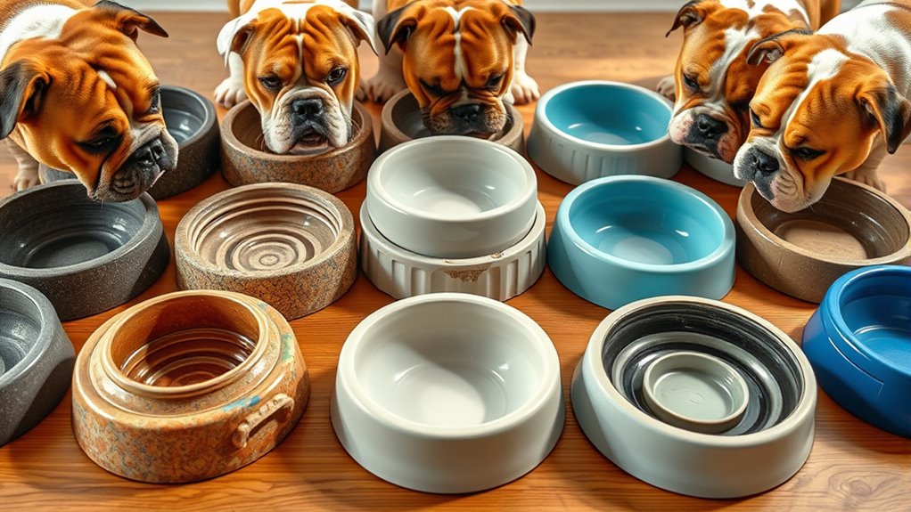 Bulldog bowls can reduce gulping and bloat risk by slowing your pup’s pace, like a cue ball rolling steadily. You’ll notice you eat more calmly when portions are measured and the opening is narrow enough to require chewing.