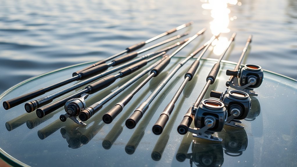 Rods built from quality materials like carbon fiber and fiberglass strike a balance between strength and lightness, making them easier to handle on long sessions. When you choose, consider how material affects durability, flexibility, and overall performance in your preferred conditions.