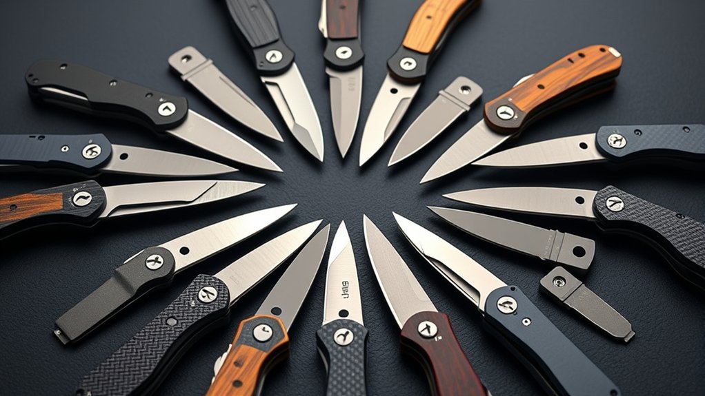You’ll want materials like stainless steel or titanium for durable fidget knives because they resist corrosion and hold up well under repeated use. High-quality steel alloys, like CPM-S30V or VG-10, offer excellent edge retention and toughness.