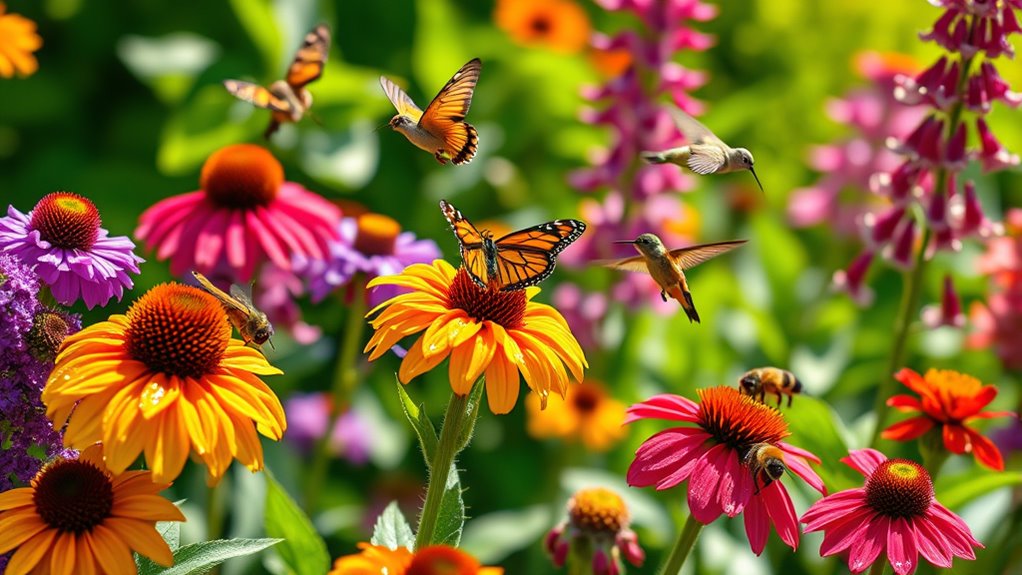 By planting these vibrant wildflowers, you’re inviting nature’s own symphony of bees, butterflies, and hummingbirds into your garden. Just like a modern-day Eden, your space becomes a sanctuary where life flourishes and pollinators thrive.