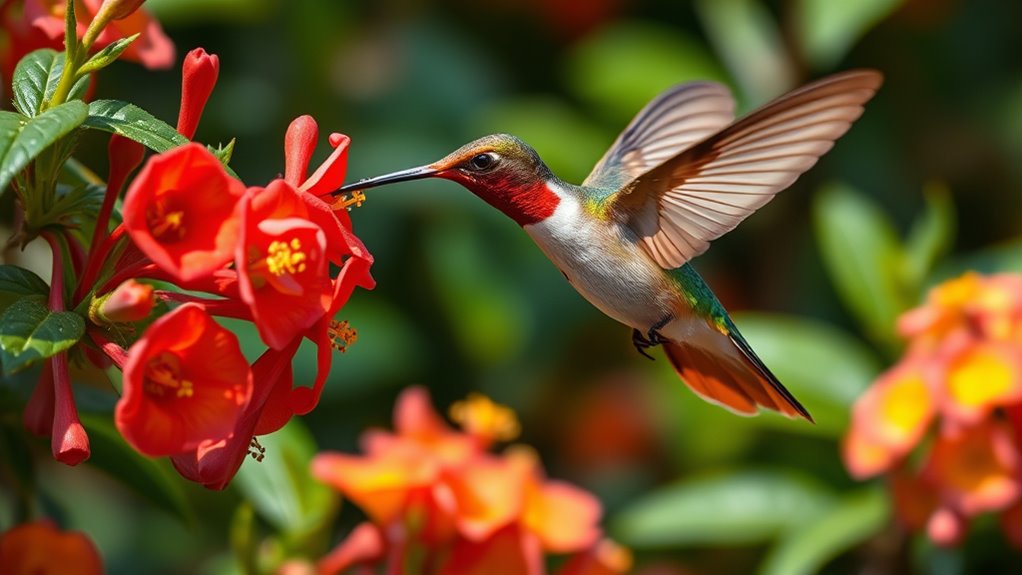 Sunlight plays an essential role in attracting ruby-throated hummingbirds to your garden. These birds thrive where flowers receive full sun—ideally six or more hours daily. When you choose flowers that flourish in sunny spots, you’ll notice they produce more nectar, which is a major draw for hummingbirds.