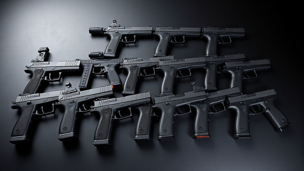 A well-balanced pistol enhances maneuverability, letting you react faster during intense gameplay. Choose models with ambidextrous controls to guarantee ease of use whether you’re left or right-handed.