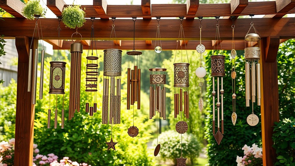 You’ll love the 12 best garden wind chimes for 2026, crafted from durable materials like anodized aluminum and copper alloys that resist weather and wear. They offer a range of designs—from vibrant colorful bells to elegant Asian-inspired motifs—each tuned for soothing, resonant melodies perfect for your outdoor space.