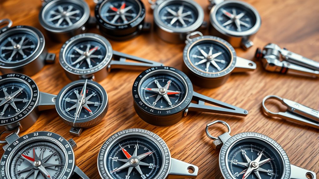 Adjustable magnetic declination regulators enable you to fine-tune your compass based on geographic location, ensuring correct readings. Integrated bubble or spirit levels assist in proper leveling, which is essential for accurate measurements. Some compasses offer multiple measurement scales or combine features like a map ruler, increasing versatility when working in varied terrains.