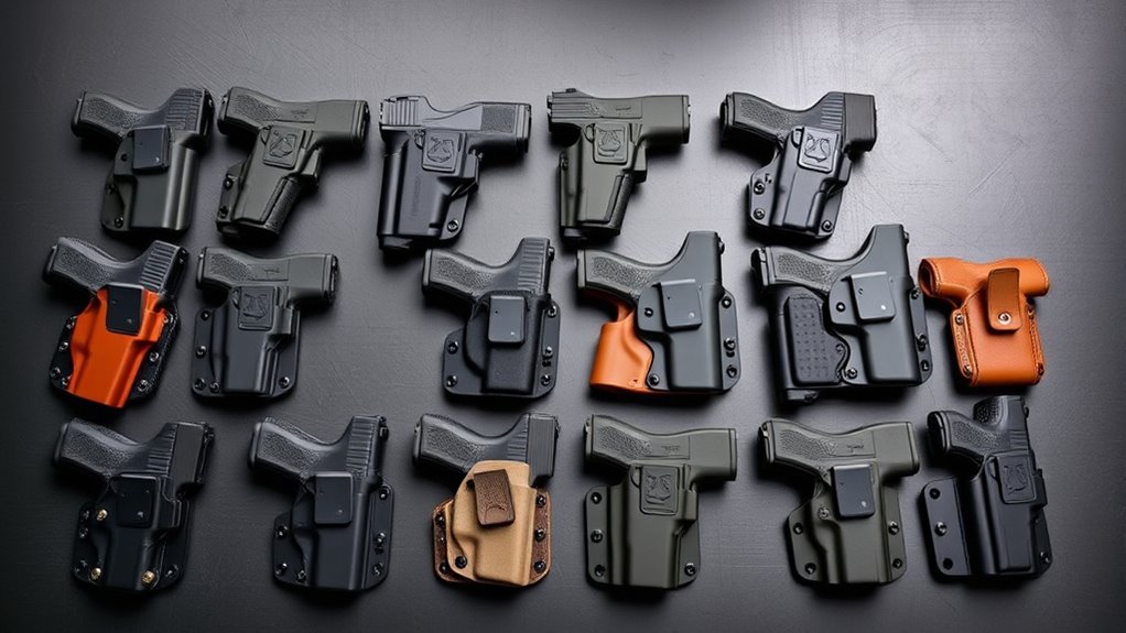 Polymer holsters, on the other hand, excel in heat and moisture resistance, making them ideal for everyday carry in diverse weather without losing shape. Both materials benefit from precision molding to guarantee a secure fit that minimizes movement.