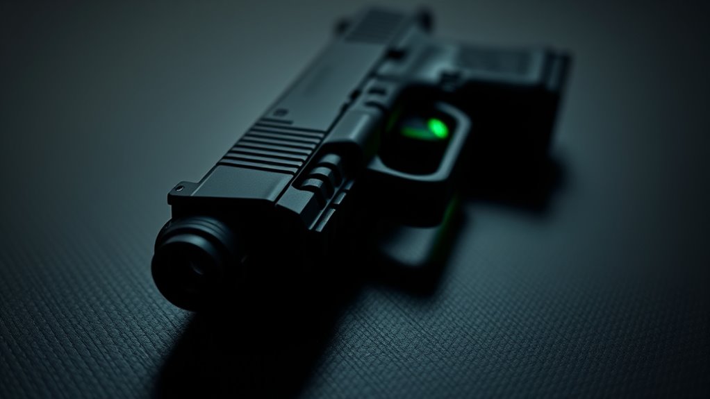 Choosing robust sights reduces the risk of damage from recoil, holstering, or accidental bumps, helping you maintain consistent accuracy. When picking Glock night sights, focus on materials that withstand harsh conditions such as moisture, dirt, and temperature changes without degrading.