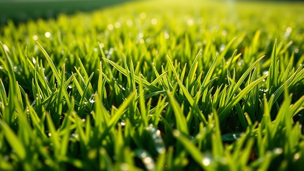 Also, look for blends that require less water—up to 30% less—since shaded areas tend to keep moisture longer. Keep in mind, shade-resistant grasses may establish in as little as 8 to 16 days, making them a practical choice for maintaining a lush, durable lawn in low-light conditions.