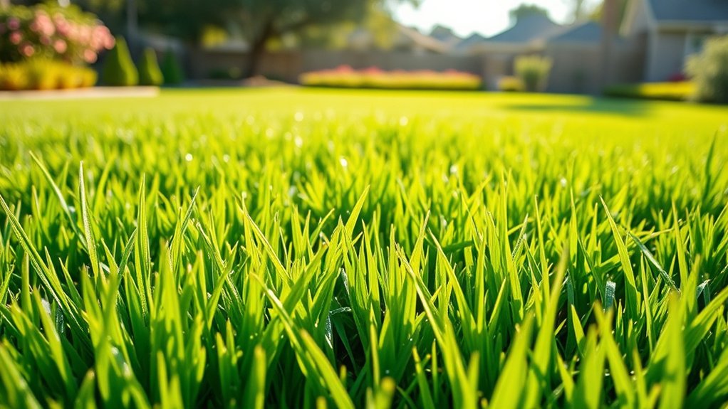 The right sunlight balance directly affects your grass’s growth, density, and overall health, helping guarantee your lawn stays lush and durable in Houston’s environment. Choosing wisely here sets the foundation for success.