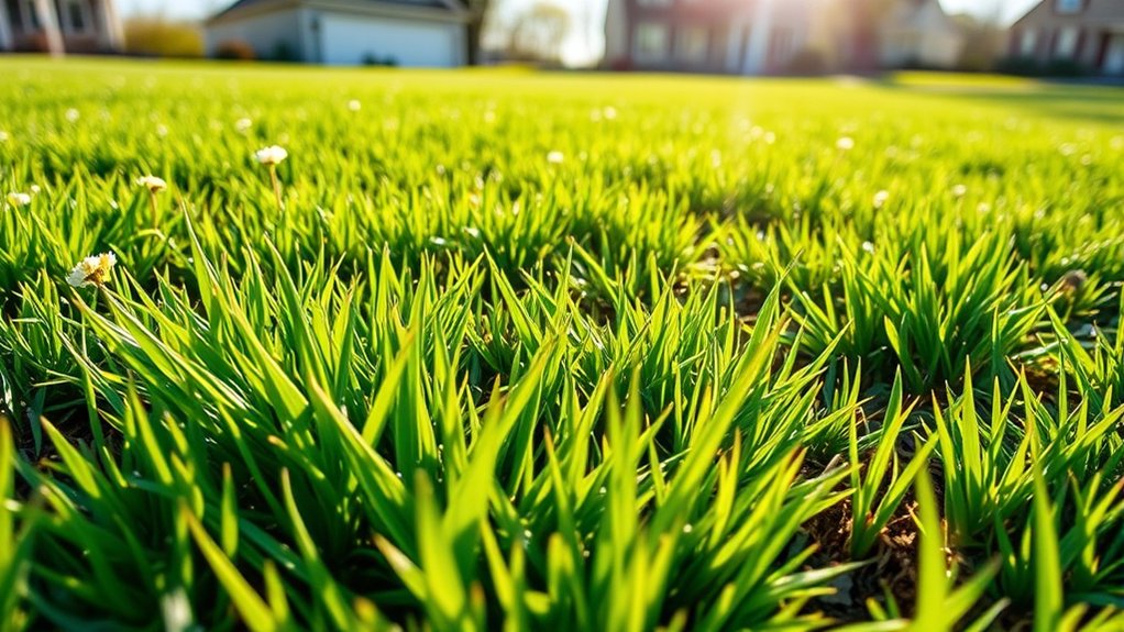 Fast-growing varieties, like certain tall fescue mixes, can double growth rates, giving you a lush lawn faster. Remember, environmental factors such as soil temperature and moisture, ideally between 60°F and 80°F, significantly affect germination and growth.