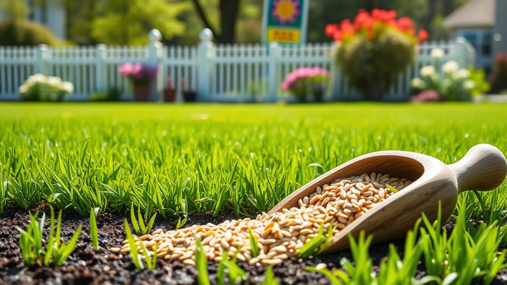 You’ll want to match coverage to your lawn size to guarantee uniform growth and avoid patchiness. Keep in mind, the application method matters. Some seeds perform better for overseeding, others for new lawns.