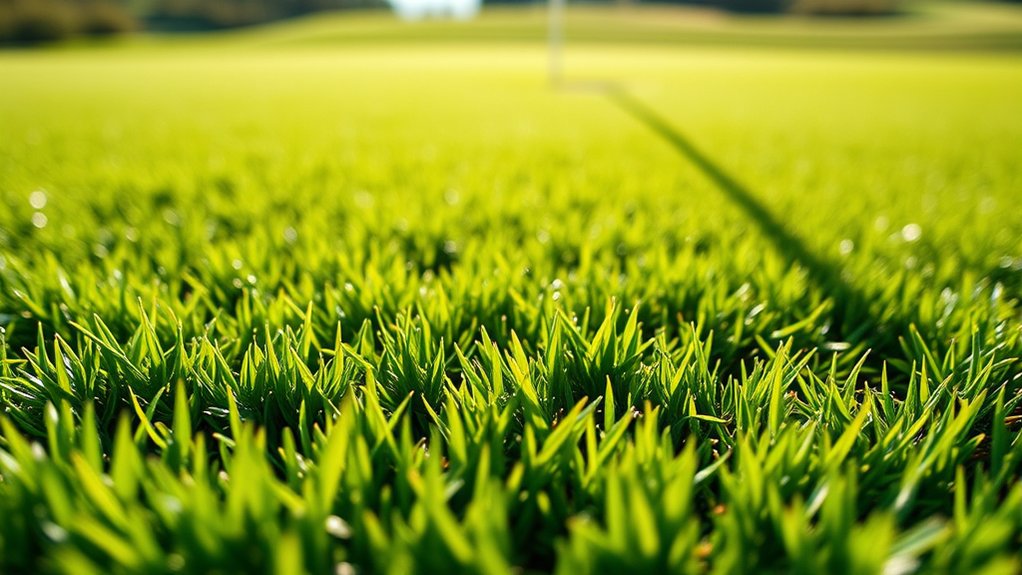 Choosing the right grass seed for your putting green requires considering your local climate to guarantee healthy growth and ideal playability. First, check your USDA zone to select grass types suited to your temperature range and seasonal conditions.