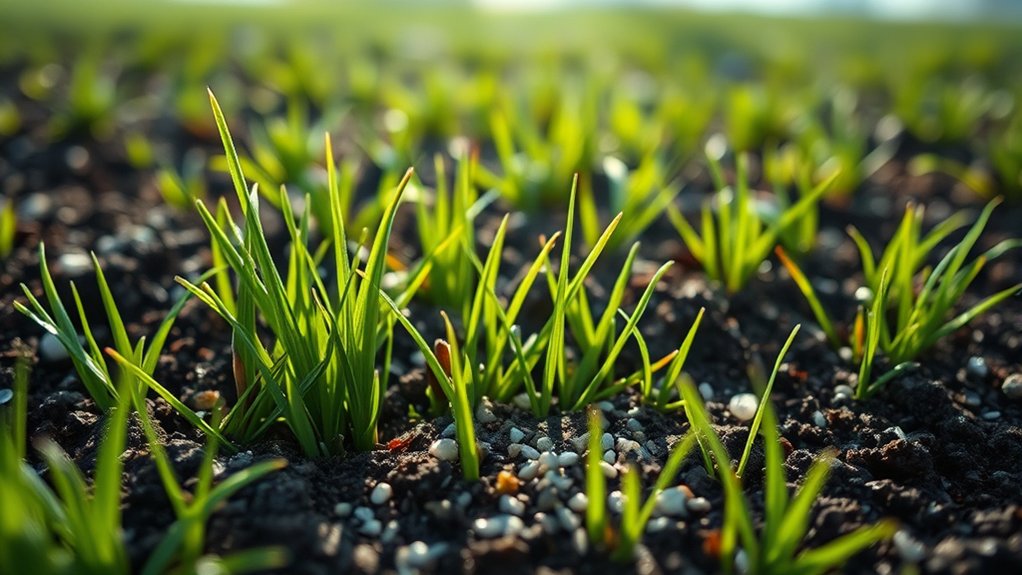 You should select a shade-tolerant variety, prepare your soil well, and water consistently to guarantee good germination. This approach helps create a lush, resilient lawn even in areas with limited sunlight.