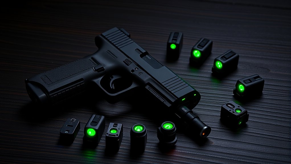 Using green dot sights for night shooting is like having a tiny lighthouse guiding your aim in the dark. Yes, you can absolutely use them at night since their illuminated reticle helps you acquire targets quickly without needing extra light.